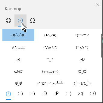 Kaomoji? Now we're talking emoticons. You can also select them from the box.